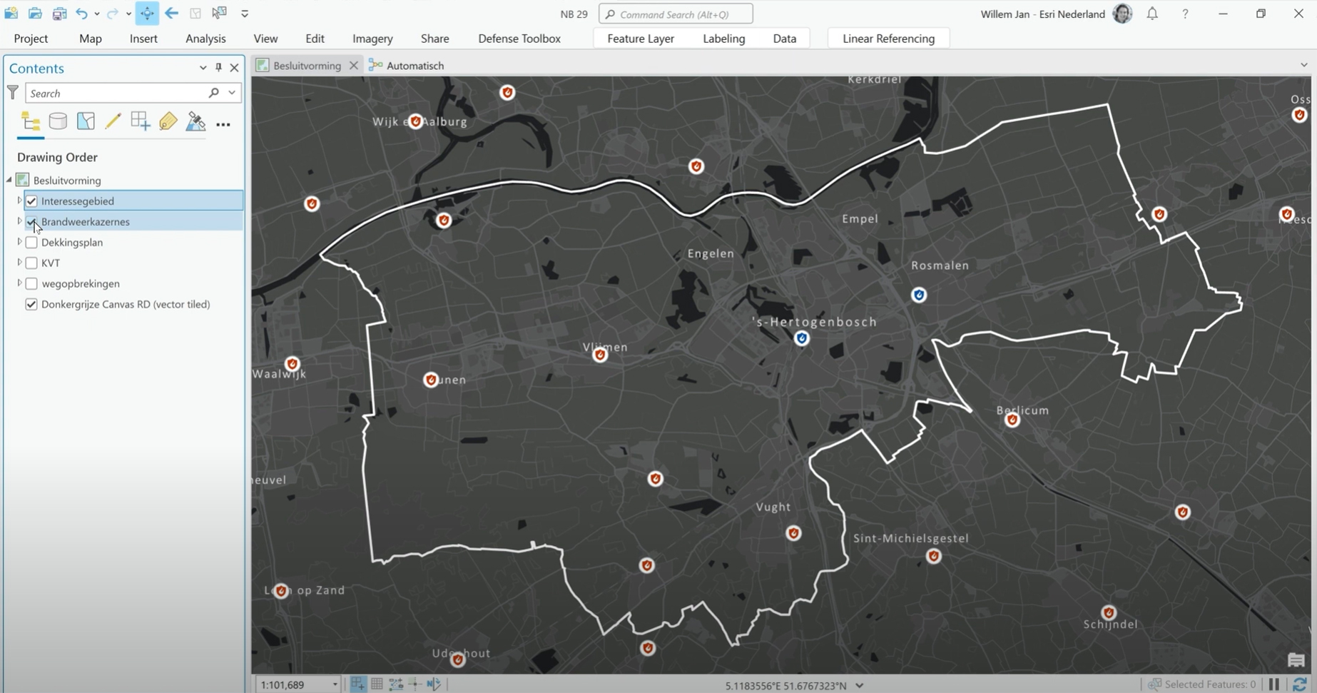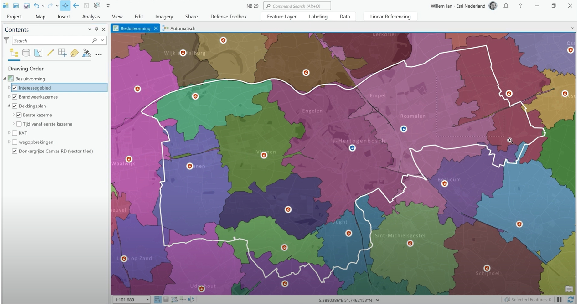 Door de data van KVT’s te ontsluiten op een digtitale kaart worden keuzes en scenario’s letterlijk zichtbaar. Willem Jan Vierbergen, product consultant bij Esri Nederland laat u in deze demo zien hoe het mogelijk is om op een inzichtelijke, gevalideerde manier de kazernevolgorde te bepalen.