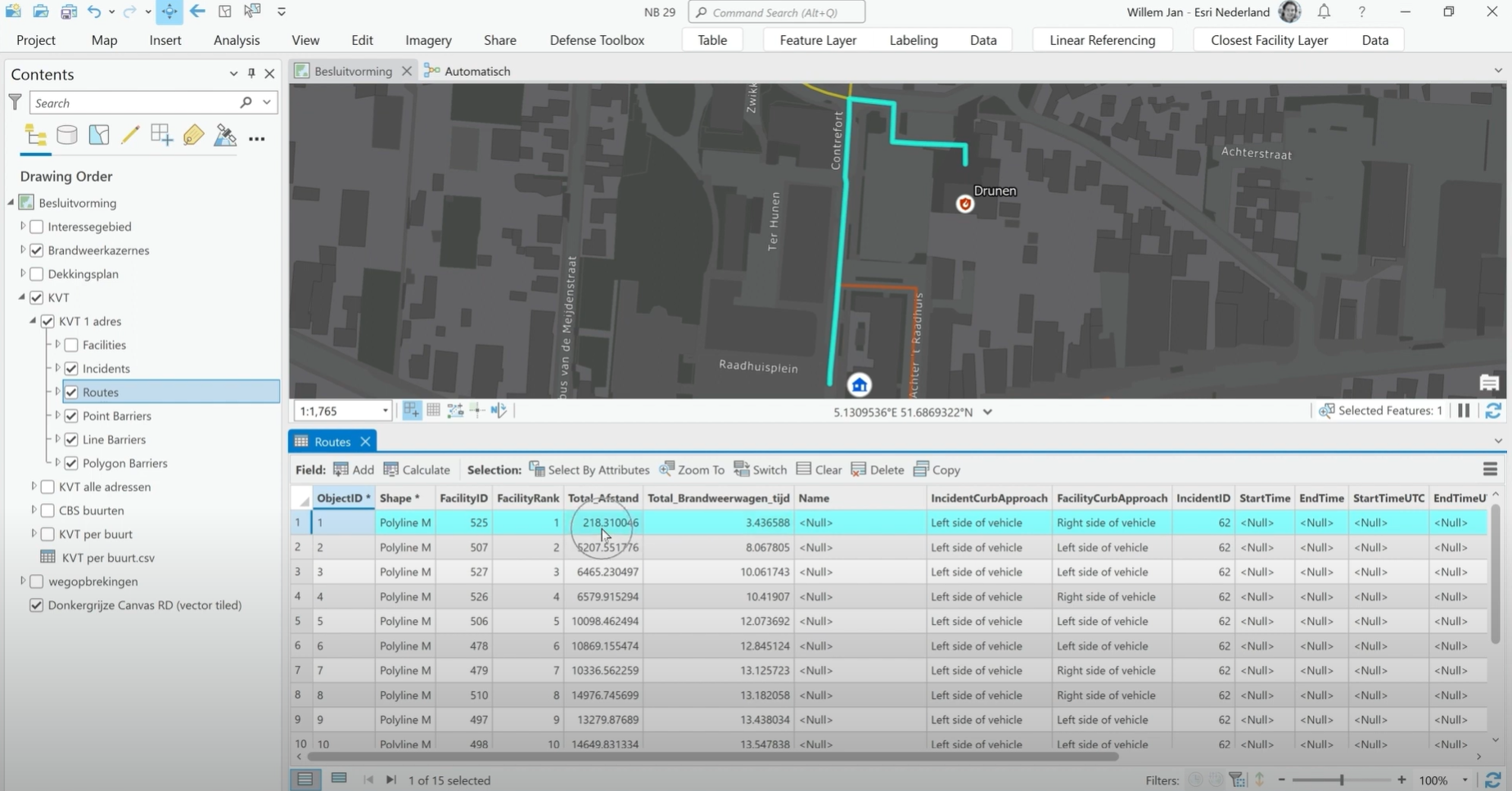 De Kazerne Volgorde Tabellen (KVT’s) zijn een kleine maar belangrijke schakel in het meldkamerproces. Aan de hand van deze tabellen wordt namelijk bepaald welke kazerne bij een melding als eerst wordt opgeroepen. Maar hoe is deze tabel opgebouwd? Is dat puur op basis van afstand of kunnen we andere factoren meenemen? Want wat is de impact van wegen die zijn afgesloten? Hoe gaan we om met spoorwegovergangen en bruggen? Met eenrichtingsverkeer? Op dit moment is hier weinig zicht op. En als er geen zicht op is, hoe wordt deze informatie dan gevalideerd?