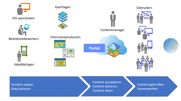 Hoe zorg je dat alle medewerkers met kaarten zelf aan de slag kunnen? Hoe zorg je dat het geen wildgroei wordt en hoe zorg je dat de inhoudelijke kennis optimaal ingezet kan worden? Niet alleen van de geo-specialisten maar ook van de vakafdelingen.