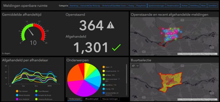 Een beeld zegt meer dan 1000 woorden, maar een dashboard spreekt managers veel meer aan. Als er een kaart wordt getoond van de meldingen of de projecten is dat leuk, maar als een dashboard toont hoeveel meldingen er nog niet zijn afgehandeld of hoeveel projecten er dit jaar worden uitgevoerd zitten de managers opeens op het puntje van de stoel.