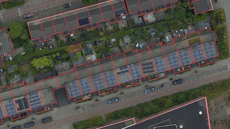 Een andere nieuwe toepassing van True Orthofoto’s is objectdetectie. Oftewel: een script op basis van Machine Learning voor het geautomatiseerd detecteren van specifieke objecten. Bertjan: “Neem bijvoorbeeld zonnepanelen. Voor de energietransitie willen gemeenten, provincies en het rijk graag zo exact mogelijk weten waar op dit moment al zonnepanelen liggen. Ook een leverancier van zonnepanelen zal daar overigens in geïnteresseerd zijn. Met een True Orthofoto detecteer je exact op welk pand ze liggen:
