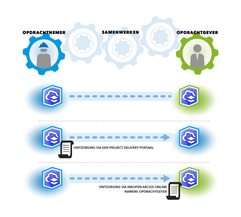 Een andere mogelijkheid is dat de opdrachtnemer als inkopende partij voor de opdrachtgever fungeert, wat nog meer flexibiliteit biedt. De opdrachtgever is dan eigenaar van de ArcGIS-licentie. De opdrachtnemer kan hiermee naast de technische ontzorging ook de inkoop van de licenties ontzorgen. Hierdoor is de opdrachtnemer niet afhankelijk van of een opdrachtgever licenties heeft en deze beschikbaar wil stellen.