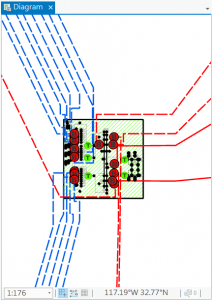 In de ArcGIS Utility Network Management-extensie wordt een aantal voorbeeld diagram templates meegeleverd. Met behulp van een rijke set geoproces tools voor schema-regels en schema-lay-outs kunnen er ook specifieke diagram templates worden samengesteld, die wellicht beter passen in de operationele ondersteuning van het netwerk.